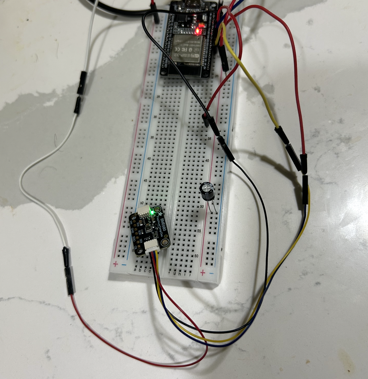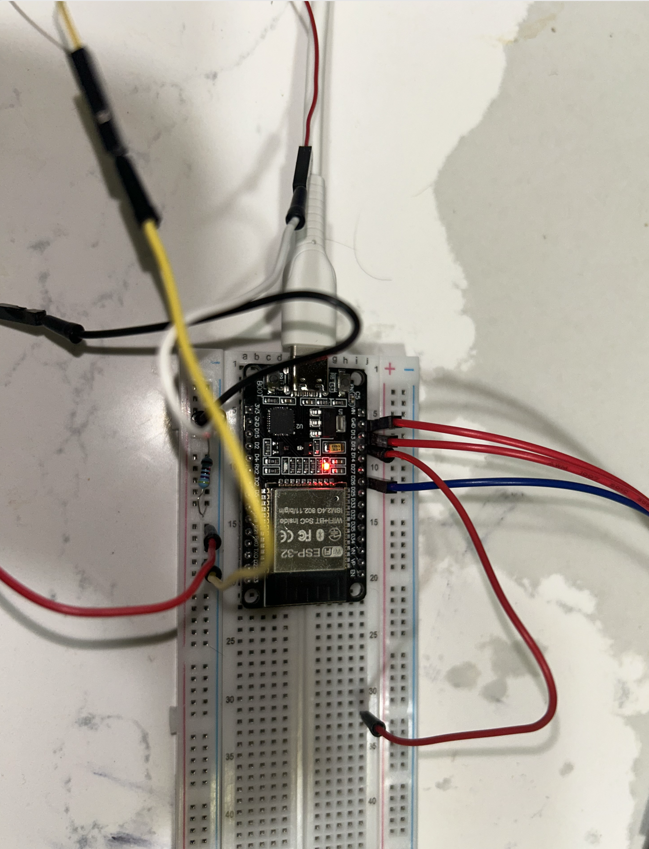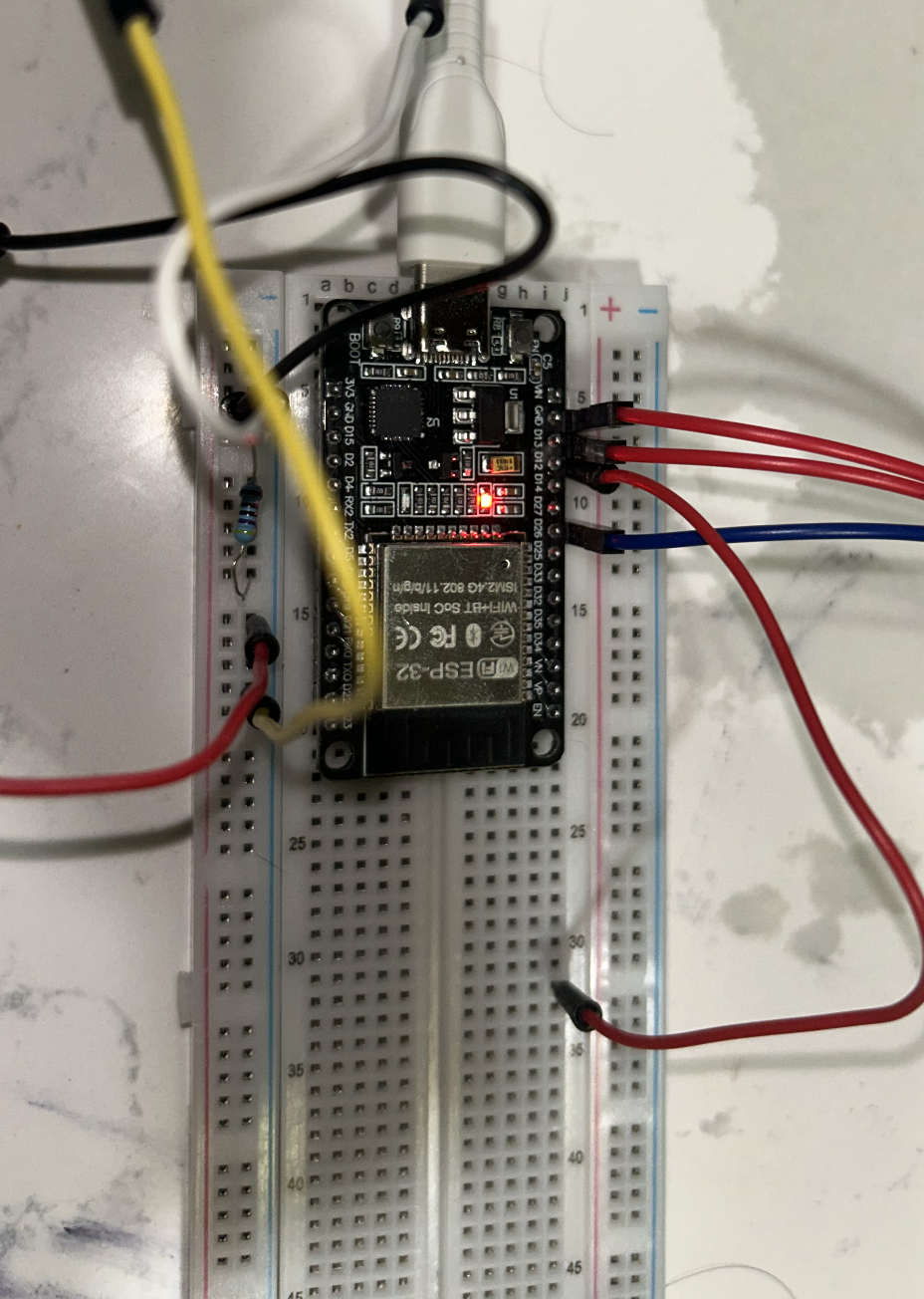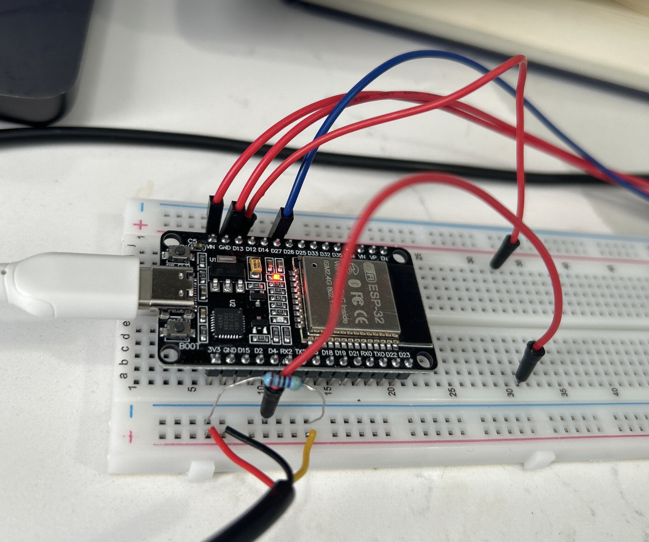 Our breadboard connected on a Type-C with ESP32 along with Dupont wires.
