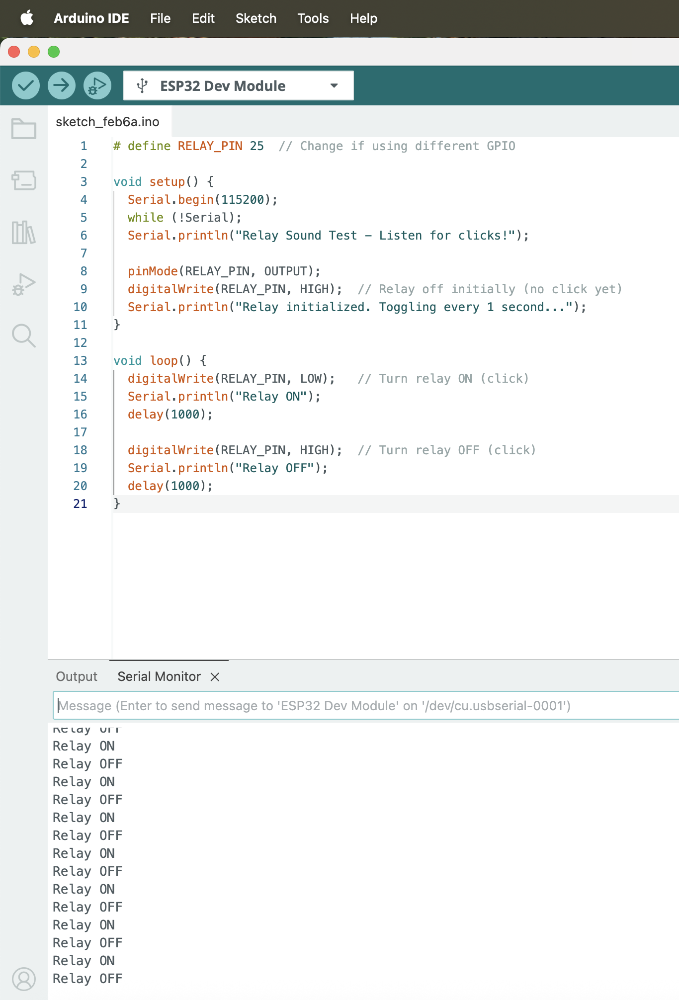 Serial.println("Relay Sound Test - Listen for clicks!");